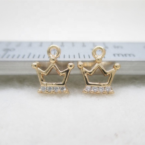 Mode Petit 18k Vrai Or Plaqué CZ Diamant Couronne En Alliage de Zinc Pendentifs Charme 7.5*9mm