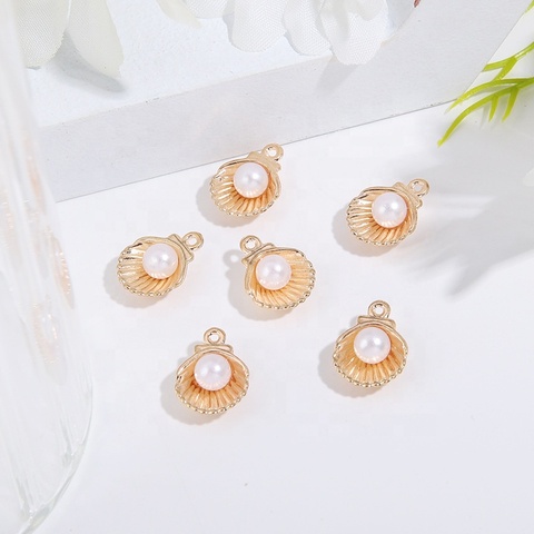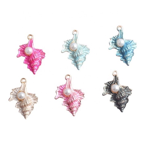 Boucles d'oreilles accessoires 3D or métal peint conque coquille perle pendentifs mode breloques pour la fabrication de bijoux