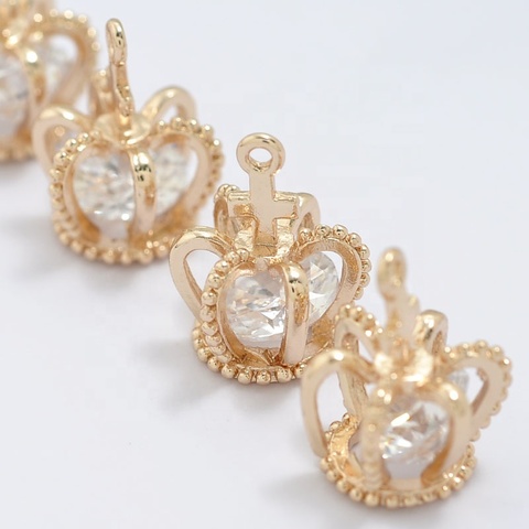 Personnalisation de bijoux à faire soi-même, rétention de couleur, ZIRCON cuivre or 18K, breloques de couronne 3D, pendentifs diamant